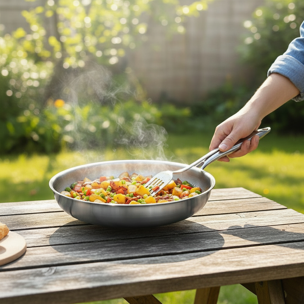 In tegenstelling tot veel pannen met chemische coatings, heeft deze pan géén PFAS, PTFE of andere twijfelachtige lagen. Geen giftige dampen, geen microscopische deeltjes die loslaten tijdens verhitting — gewoon puur koken zoals het hoort.