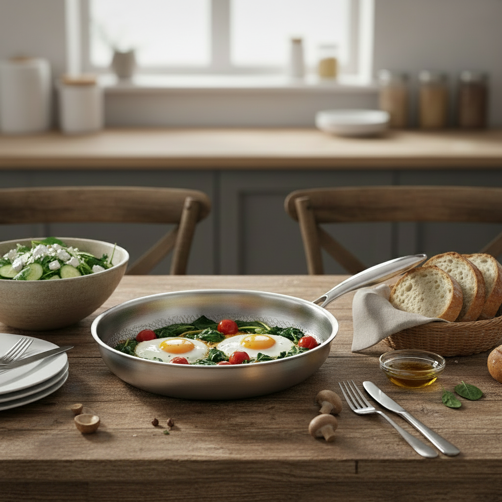 Of je nu eitjes bakt, groenten sauteert, vlees perfect bruineert of eenpansgerechten maakt — deze pan levert gelijke warmteverdeling en constante resultaten, zonder hotspots of ongelijkmatige garing.