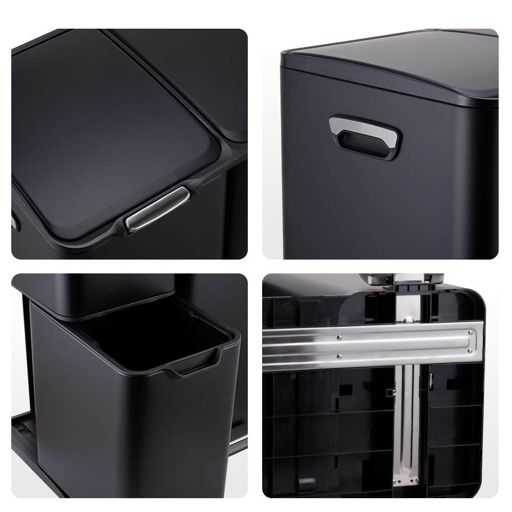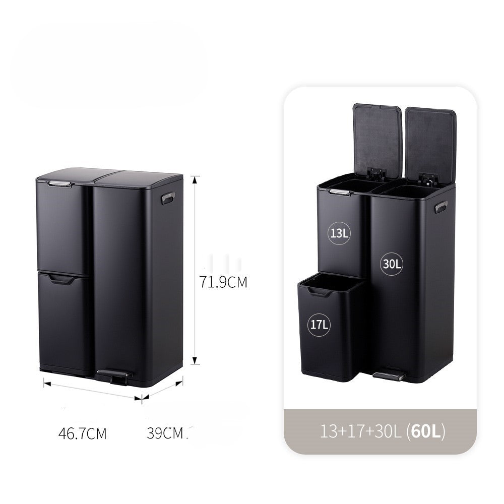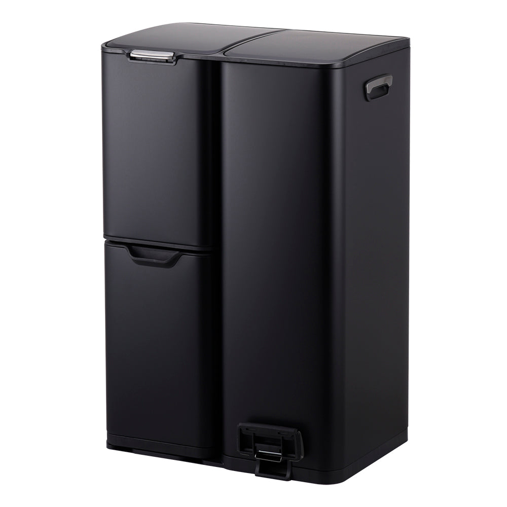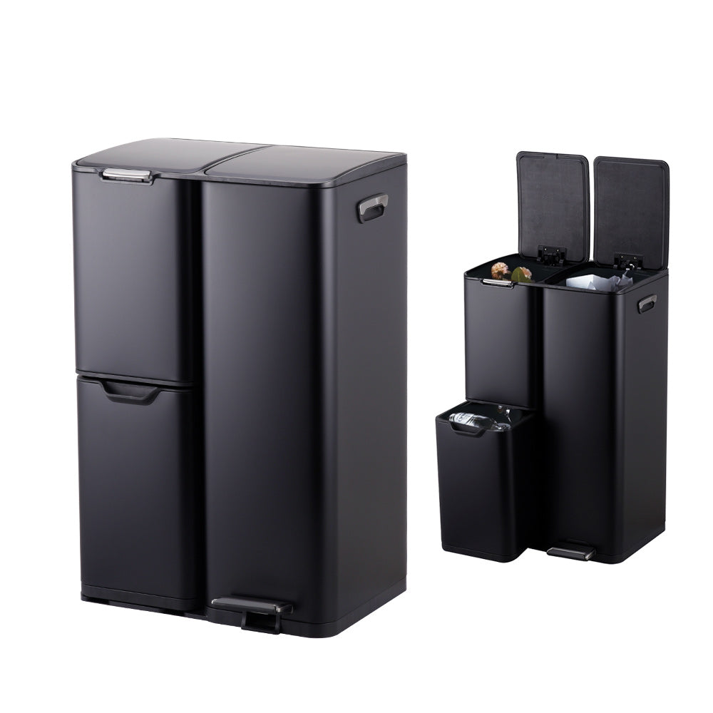 Met drie aparte vakken scheid je moeiteloos plastic, GFT, papier of restafval, terwijl de handige pedalen ervoor zorgen dat je de deksels hygiënisch en zonder moeite kunt openen.