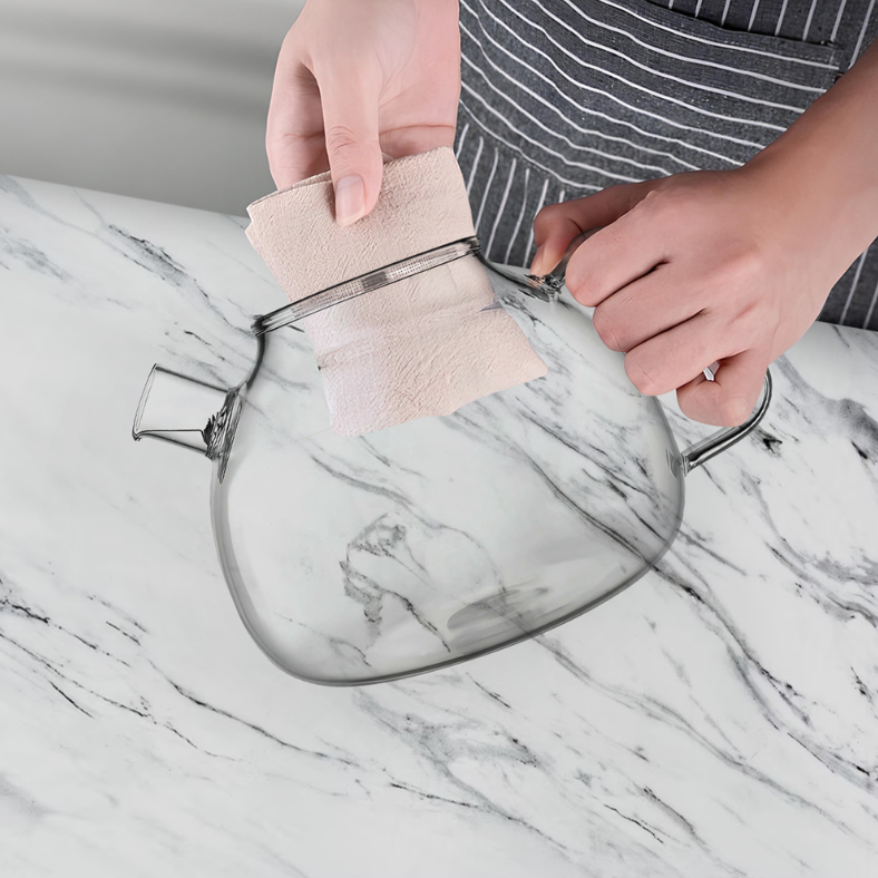 Glas is een duurzaam materiaal dat niet poreus is, waardoor het minder vatbaar is voor vlekken, geuren en bacteriën. Een glazen theeset is dus gemakkelijk schoon te maken en kan lang meegaan bij goed onderhoud.