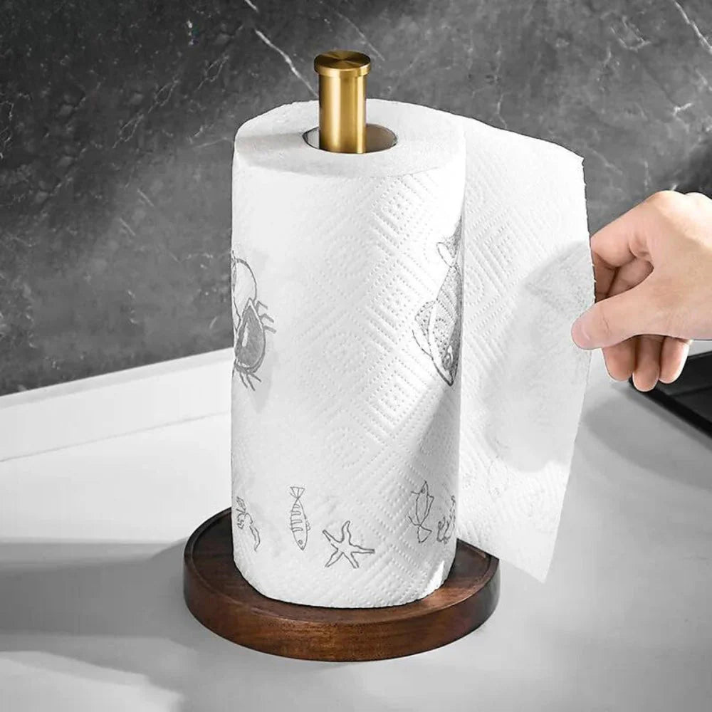 VALORIS – Keukenrolhouder RVS met walnoothout en gouden afwerking